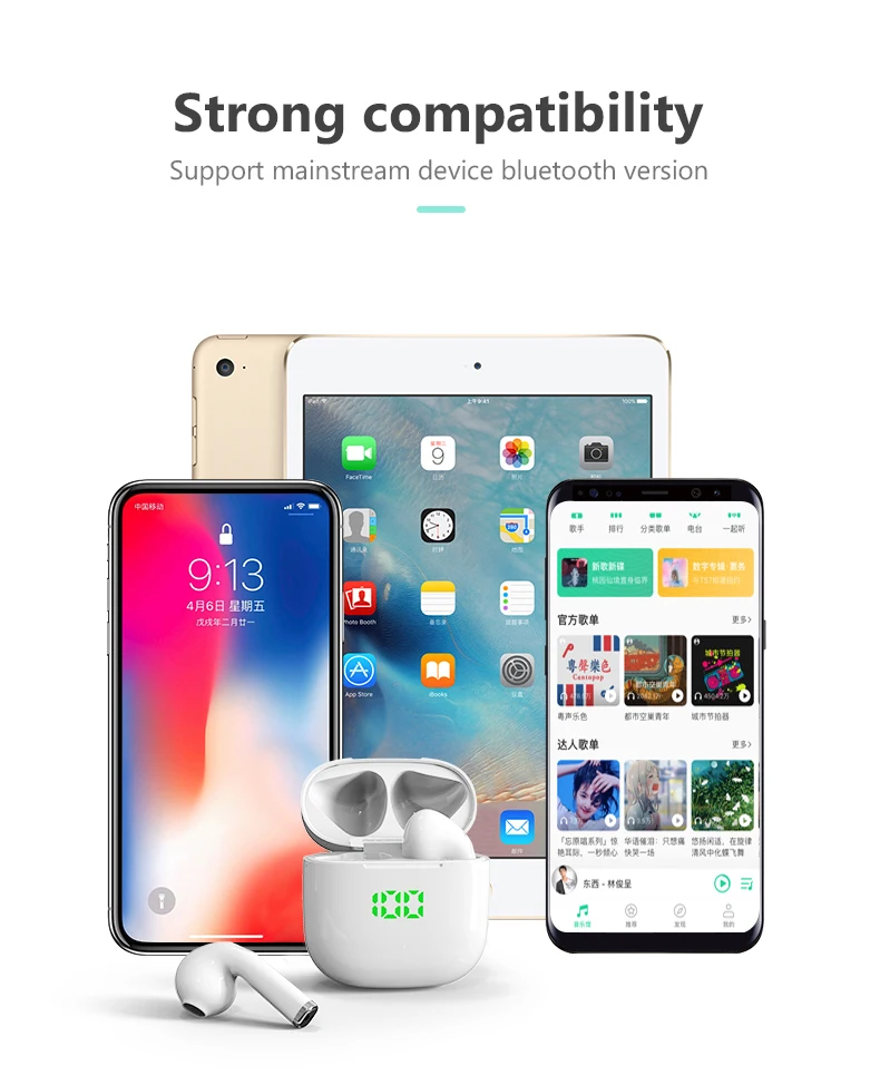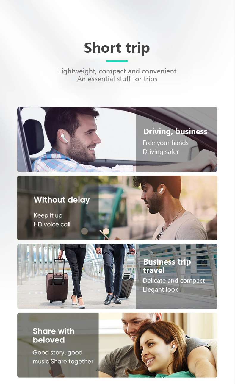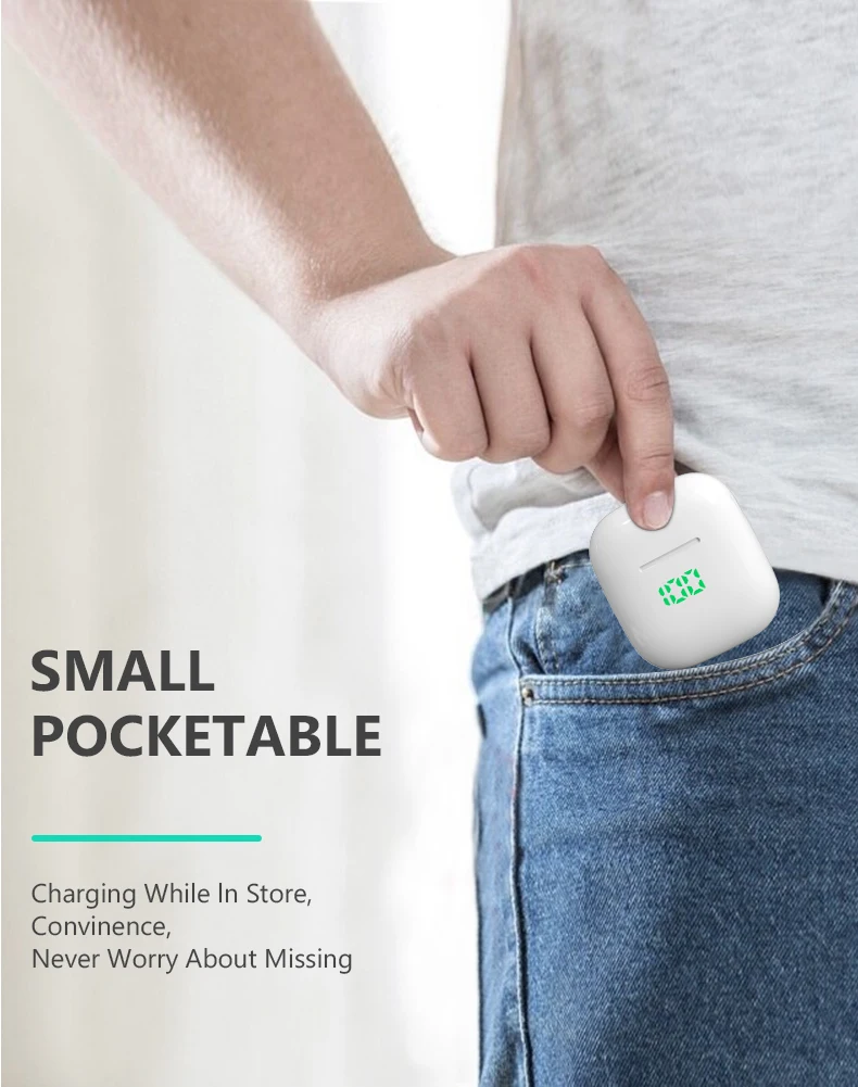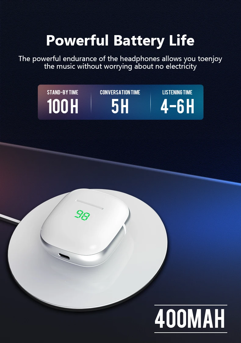 Features: 1. listening to the music , support songs and call,adjust volume +/-;2. remind call number, the last call back, all intelligent Chinese and English voice prompts, boot, pair, shut down the phone power will be low voice prompts;4. Power capacity will show on your iPhone, you can see the power situation anytime, do not worry about the electricity ,make your life without worry;5. Bluetooth headset connected to the phone after the shutdown , and then open the Bluetooth headset will connect back to the phone automatically , more convenient;6. Intelligent compatibility: Support all Bluetooth mobile phone, tablet, notebook, singing it, music, movies, etc., universal all mobile phoneAutomatic pairing 1. Open the charging box lid, the earphone will automatically open and connect.2. Turn on the phone Bluetooth search and click on to pair. Then take out the earphone to use it.3. When used again, they will automatically connect to your Bluetooth device.Product features:Listening to music time: 5-6 hoursTalk time: 5-6 hoursStandby time: 120 hoursCharging time: 1 hourBT distance: W/O obstacles 10-15m Charging Dock Battery Capacity(mAh): 400mAhSingle earphone battery capacity(mAh):40mAhProduct weight: 46gPacking list:1 x Left and Right Earphones,1 x Charging Dock ( 400mAh ),1 x English Manual,1 x Type-c Charging Cable