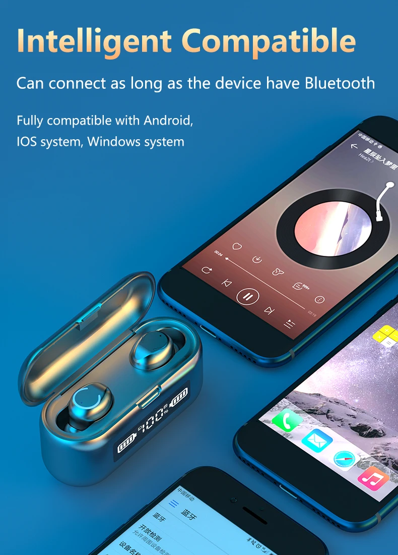 SPECIFICATIONS Product Wireless Headphones Bluetooth Earphones V5.1 TWS 2000mAh LED 9D Stereo Sports Waterproof Earbuds Headsets Earphone Headphone