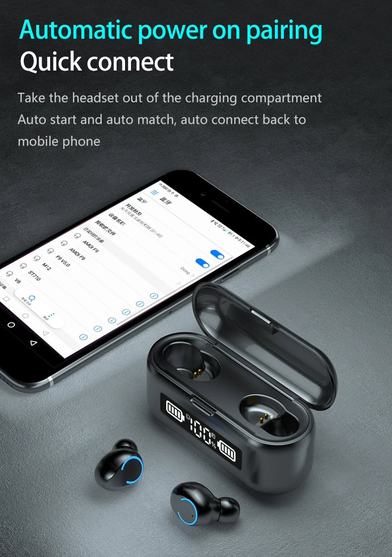Buy Wireless Headphones Bluetooth Earphones V5.1 TWS 2000mAh LED 9D Stereo Sports Waterproof Earbuds Headsets Earphone Headphone, and You receive Discount Code for 49% off