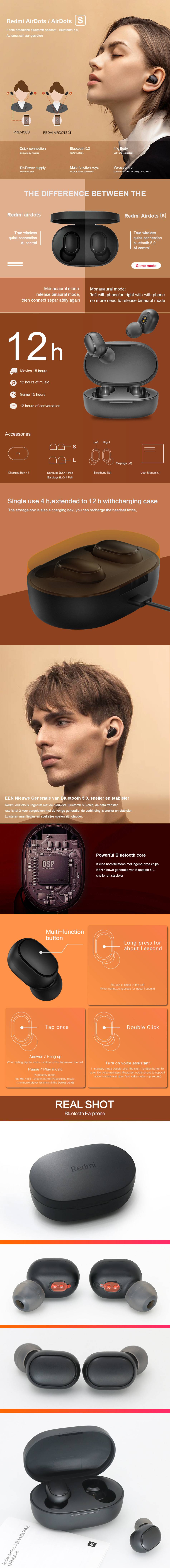Product Description of 2020 original Xiaomi Airdots 2 TWS Bluetooth Earphone Stereo bass BT 5.0 headphones With Mic Handsfree Earbuds AI Control Redmi